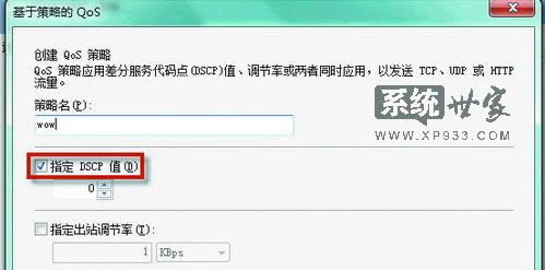 在開始菜單的搜索窗口中輸入“gpedit.msc”進入組策略設(shè)置,找到“基于策略的Qos”這一選項,右鍵選擇新建一個策略,這里我們命名 為“WOW”,然后設(shè)置DSCP值為63,然后點擊下一步。