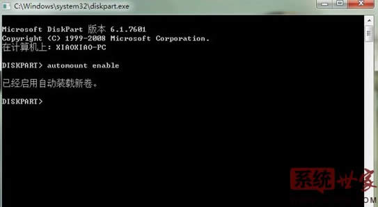2、然后在打開的命令提示符窗口中輸入“automount enable”命令;