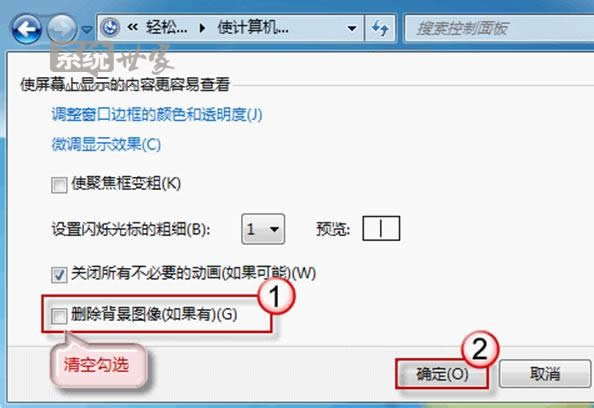 查看一下窗口底部“使屏幕上顯示的內容更易于查看”部分“刪除背景圖像(如果有)”是否被勾選?如果有,請清空勾選;