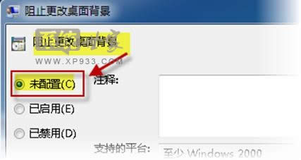 如果Windows7桌面背景被鎖定,也會出現無法更改桌面背景的情況,只要在在組策略中將“阻止更改桌面背景”和“桌面墻紙”分別配置為“未配置”即可。