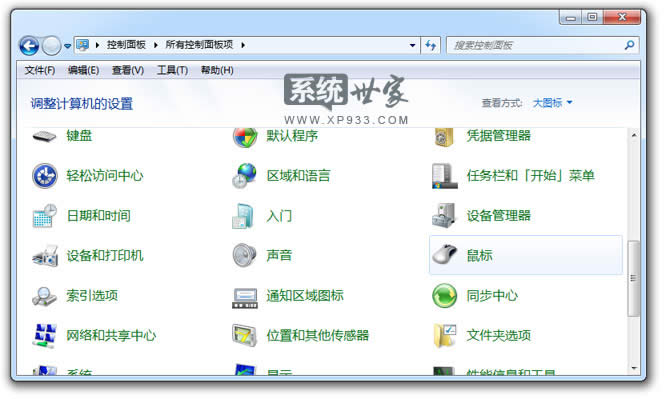 2、在打開的控制面板窗口中,找到并打開“鼠標”選項;