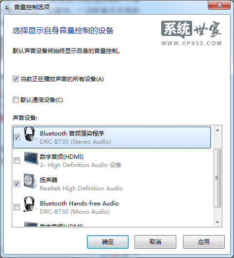 打開音量控制選項,聲音設備中也會出現“Bluetooth音頻渲染程序”,鉤選藍牙程序和揚聲器