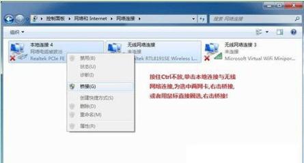當你想在家里原win7系統玩csol ,家里有5個人,臺式電腦3臺,筆記本的2臺,想把局域網連接起來打CS,但市場上一般路由器只有4個LAN端口,此時就需要橋接,下面筆者介紹Win7局域網網絡橋接打CS的方法,具體操作如下: 1、在“網絡”圖標上右鍵,選擇“屬性”,在打開的網絡和共享中心窗口中,點擊“更改適配器設置”。 2右鍵“本地連接與無線網絡連接”選擇“橋接”。 3、橋接完成。 windows 7 的設計主要圍繞五個重點——針對筆記本電腦的特有設計;基于應用服務的設計;用戶的個性化;視聽娛樂的優化;用戶易用性的新引擎。 跳躍列表,系統故障快速修復等,這些新功能令Windows 7成為最易用的Windows。 |