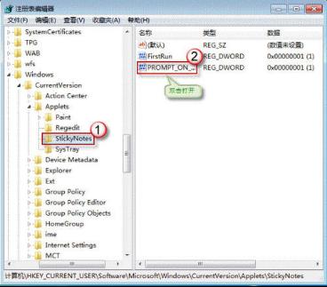 Windows 7,中文名稱視窗7,是由微軟公司(Microsoft)開發的操作系統,內核版本號為Windows NT 6.1。Windows 7可供家庭及商業工作環境:筆記本電腦 、平板電腦 、多媒體中心等使用。Windows 7可供選擇的版本有:入門版(Starter)、家庭普通版(Home Basic)、家庭高級版(Home Premium)、專業版(Professional)、企業版(Enterprise)(非零售)、旗艦版(Ultimate)。 windows 7自帶有便箋工具,它是用戶工作中非常得力的工具,隨用隨貼,非常方便。便箋提示功能的存在能夠讓用戶慎重考慮是否真正關閉便箋,不會讓一個失誤的操作直接關掉了工作中的便箋。但是有時候用戶在刪除便箋的過程中,因工作中匆忙,不小心勾選了“不再顯示此消息”,就會把工作中的便箋直接關掉了。這樣就會造成刪除便箋時在沒有提示的情況下直接刪除掉,容易造成誤刪除工作中的便箋。為了保險起見,還是恢復Windows 7便箋提示比較好,那么如何恢復誤刪Windows 7便箋提示呢?不知道的用戶請跟著小編一起來看看win7系統便箋提示功能誤刪后的恢復方法吧。![]() Windows 7便箋提示功能誤刪的恢復方法: 1、按“WIN+R”打開“運行”窗口輸入“regedit”命令后按回車,打開注冊表編輯器。 2、在打開的注冊表編輯器中找到以下注冊表子項: HKEY_CURRENT_USER\Software\Microsoft\Windows\CurrentVersion\Applets\StickyNotes,然后雙擊 PROMPT_ON_DELETE 注冊表項。 ![]() 3、 在打開的“編輯DWORD值”對話框中,在數據數值處鍵入 00000001,然后單擊“確定”后退出注冊表即可。 ![]() 通過以上恢復方法操作后,再去刪除便箋,便箋提示功能就會跳出來了。 windows 7 的設計主要圍繞五個重點——針對筆記本電腦的特有設計;基于應用服務的設計;用戶的個性化;視聽娛樂的優化;用戶易用性的新引擎。 跳躍列表,系統故障快速修復等,這些新功能令Windows 7成為最易用的Windows。 |