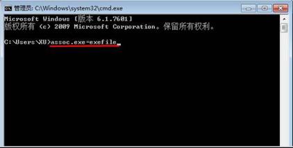 | Windows 7,中文名稱視窗7,是由微軟公司(Microsoft)開發的操作系統,內核版本號為Windows NT 6.1。Windows 7可供家庭及商業工作環境:筆記本電腦 、平板電腦 、多媒體中心等使用。Windows 7可供選擇的版本有:入門版(Starter)、家庭普通版(Home Basic)、家庭高級版(Home Premium)、專業版(Professional)、企業版(Enterprise)(非零售)、旗艦版(Ultimate)。 在Win7系統中,正常情況下,選擇可執行程序可Enter鍵就能運行,但一些用戶碰到了打開任意exe擴展名的文件都會彈出“選擇打開方式”的提示,打開exe文件提示“選擇打開方式”怎么辦?現小編就此問題,給大家介紹win7系統打開方式的解決方法。1、按“Win+R”打開“運行”窗口,輸入“cmd”命令后按回車鍵。 2、在打開的命令提示符窗口處輸入“assoc.exe=exefile”命令后按回車執行 2、此時屏幕上顯示“.exe=exefile”,關閉命令提示框并重啟電腦即可。 以上就是關于win7系統打開方式介紹了,遇到此類問題可參照以上的方法解決。 windows 7 的設計主要圍繞五個重點——針對筆記本電腦的特有設計;基于應用服務的設計;用戶的個性化;視聽娛樂的優化;用戶易用性的新引擎。 跳躍列表,系統故障快速修復等,這些新功能令Windows 7成為最易用的Windows。 |