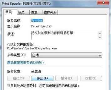 2、在打開的服務窗口中,找到Print Spooler服務,雙擊打開服務屬性設置窗口,選擇“停止”。