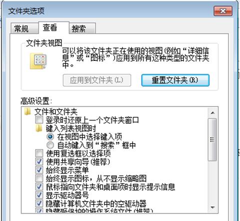 ?3、在“文件夾選項”選擇“查看”選項卡,勾選如圖所示的選項,并點擊確定按鈕,如圖: