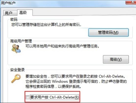 | Windows 7,中文名稱視窗7,是由微軟公司(Microsoft)開發的操作系統,內核版本號為Windows NT 6.1。Windows 7可供家庭及商業工作環境:筆記本電腦 、平板電腦 、多媒體中心等使用。Windows 7可供選擇的版本有:入門版(Starter)、家庭普通版(Home Basic)、家庭高級版(Home Premium)、專業版(Professional)、企業版(Enterprise)(非零售)、旗艦版(Ultimate)。 win7筆記本開機登陸界面直接顯示輸入密碼的方法分享給大家。也許你會發現,Windows7系統在開機的時候和XP系統一樣,開機總要按Ctrl+hfit+del快捷鍵的界面,如何取消開機按Ctrl+Shfit+Del快捷鍵呢?雖然取消密碼能夠直接登錄而不會出現需要按Ctrl+hfit+del的界面,但是如果你的電腦處于集體環境中的話,設置開機密碼為了電腦的安全?赏ㄟ^以下方法設置開機顯示輸入密碼而不用按快捷鍵彈出界面,具體如下:1、在Windows7系統中點擊“開始——控制面板——用戶賬戶”選項; ![]() 2、再彈出來界面中點擊“管理用戶賬戶”選項; 3、彈出“用戶賬戶”設置對話框中,切換到“高級”選項卡,在安全登錄下方將“要求用戶按Ctrl+Shfit+Del”前面的勾去掉,點擊“確定”保存設置即可 。 通過以上方法設置后,win7開機就無需按Ctrl+Shfit+Del快捷鍵,直接顯示輸入密碼了,非常簡單,感興趣的用戶趕快試試看吧。 windows 7 的設計主要圍繞五個重點——針對筆記本電腦的特有設計;基于應用服務的設計;用戶的個性化;視聽娛樂的優化;用戶易用性的新引擎。 跳躍列表,系統故障快速修復等,這些新功能令Windows 7成為最易用的Windows。 |
