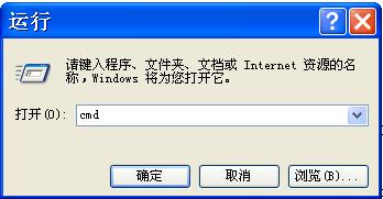 1、點(diǎn)擊“開始——運(yùn)行”,在“運(yùn)行”中輸入“CMD”命令后按回車,打開“命令提示符”窗口。