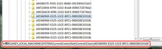 2.在打開的"注冊(cè)表編輯器"中,,依次找到以下注冊(cè)項(xiàng) HKEY_LOCAL_MACHINE\SYSTEM\CurrentControlSet\Control\Class\{4D36E965-E325-11CE-BFC1-08002BE10318};