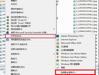 1、打開存放圖片或照片的文件夾,右擊任意一張圖片文件,選擇“打開方式——選擇默認(rèn)程序”。