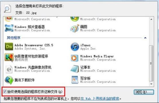 4、找到想要關(guān)聯(lián)的程序后,將“始終使用選擇的程序打開這種文件”前面的勾選上,點擊“確定”保存后退出。