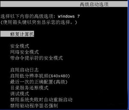 3、重新啟動 Windows 7 在啟動時按住 F8,便能夠在“高級啟動選項”中看到“修復(fù)計算機(jī)”的選項。如下圖所示: