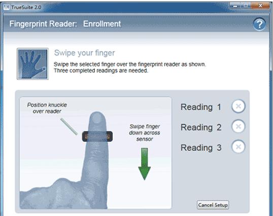 5、根據(jù)屏幕提示信息將手指放在指紋識(shí)別器上掃描指紋信息。