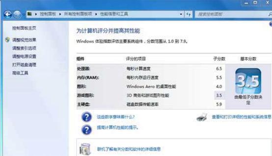 比如下圖中的基本分數是3.5分,而這個分數是根據3D商務和游戲圖形性能的最低分得出的。