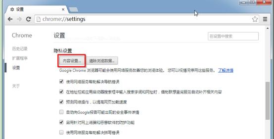 3、在彈出的高級設置窗口中,拉動滾動條找到“隱私設置”,點擊“內容設置”