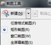 2、在“新建”按鈕右側處的小三角處右擊,彈出下拉列表中提供了四種不同的截圖模式:“任意格式截圖”、“矩形截圖”、“窗口截圖”、“全屏幕截圖”。先選擇好自己需用的模式,然后點擊“新建”,就可進行截圖操作了。