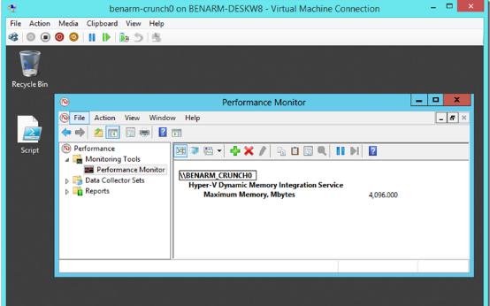 2、利用Performance Monitor,即通過Hyper-V Dynamic Memroy Integration Service的Mbytes性能計數(shù)器來查看Maximum Memory。