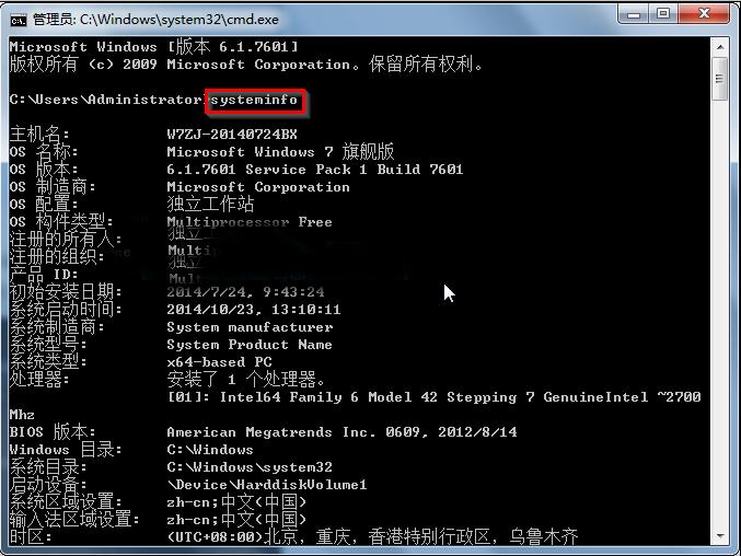 | Windows 7,中文名稱視窗7,是由微軟公司(Microsoft)開發(fā)的操作系統(tǒng),內(nèi)核版本號為Windows NT 6.1。Windows 7可供家庭及商業(yè)工作環(huán)境:筆記本電腦 、平板電腦 、多媒體中心等使用。Windows 7可供選擇的版本有:入門版(Starter)、家庭普通版(Home Basic)、家庭高級版(Home Premium)、專業(yè)版(Professional)、企業(yè)版(Enterprise)(非零售)、旗艦版(Ultimate)。 今天小編給大家分享多種方法查看系統(tǒng)之家win7旗艦版gho系統(tǒng)中的詳細信息。如需了解系統(tǒng)制造商,系統(tǒng)型號,系統(tǒng)名稱等系統(tǒng)的詳細信息內(nèi)容時,請來學習下面的查看方法吧。方法一:slmgr.vbs -dlv命令 1、按“win+r”組合鍵打開“運行”窗口,輸入“slmgr.vbs -dlv”命令后按回車或點擊確定。 2、此時系統(tǒng)就會彈出系統(tǒng)的詳細信息了,包括系統(tǒng)的版本信息,包括激活ID等。 ![]() 方法二:dxdiag命令查看方法 1、按“win+r”組合鍵打開“運行”窗口,輸入“dxdiag”命令后按回車或點擊確定。 2、在打開的DirectX診斷工具窗口,可以看到系統(tǒng)信息。 ![]() 方法三:systeminfo 命令查看法 1、按“win+r”組合鍵打開“運行”窗口,輸入“cmd”命令后按回車或點擊確定。 2、在命令提示符窗口,輸入systeminfo命令后按回車鍵,就會看到系統(tǒng)的名稱、版本制造商、配置等詳細信息了,如下圖示。 windows 7 的設計主要圍繞五個重點——針對筆記本電腦的特有設計;基于應用服務的設計;用戶的個性化;視聽娛樂的優(yōu)化;用戶易用性的新引擎。 跳躍列表,系統(tǒng)故障快速修復等,這些新功能令Windows 7成為最易用的Windows。 |