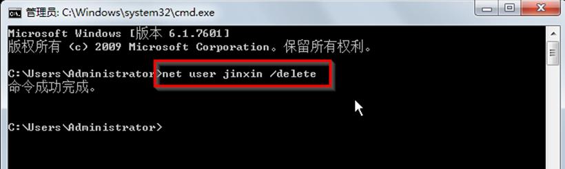 | Windows 7,中文名稱視窗7,是由微軟公司(Microsoft)開發(fā)的操作系統(tǒng),內核版本號為Windows NT 6.1。Windows 7可供家庭及商業(yè)工作環(huán)境:筆記本電腦 、平板電腦 、多媒體中心等使用。Windows 7可供選擇的版本有:入門版(Starter)、家庭普通版(Home Basic)、家庭高級版(Home Premium)、專業(yè)版(Professional)、企業(yè)版(Enterprise)(非零售)、旗艦版(Ultimate)。 今天小編教你通過命令快速刪除系統(tǒng)之家win7旗艦版gho系統(tǒng)中的新用戶。命令提示符窗口給用戶提供了很大的方便,如果你創(chuàng)建了一個新用戶,現(xiàn)在又想刪除時,只要一命令就搞掂了,具體如下:1、按“WIN+R”快捷鍵打開“運行”窗口,輸入“CMD”指令命令后按回車。 2、比如這里需要刪除的用戶名為 jinxin ,那么就在打開的命令行窗口輸入命令net user jinxin /delete后按回車即可。 ![]() 3、然后再用net user命令來查看用戶賬戶。就會發(fā)現(xiàn)jinxin用戶已經刪除了,不在此列表中了。 通過以上對通過命令快速刪除系統(tǒng)之家win7旗艦版gho系統(tǒng)中的新用戶介紹了,感興趣的用戶可以去試試哦。 windows 7 的設計主要圍繞五個重點——針對筆記本電腦的特有設計;基于應用服務的設計;用戶的個性化;視聽娛樂的優(yōu)化;用戶易用性的新引擎。 跳躍列表,系統(tǒng)故障快速修復等,這些新功能令Windows 7成為最易用的Windows。 |