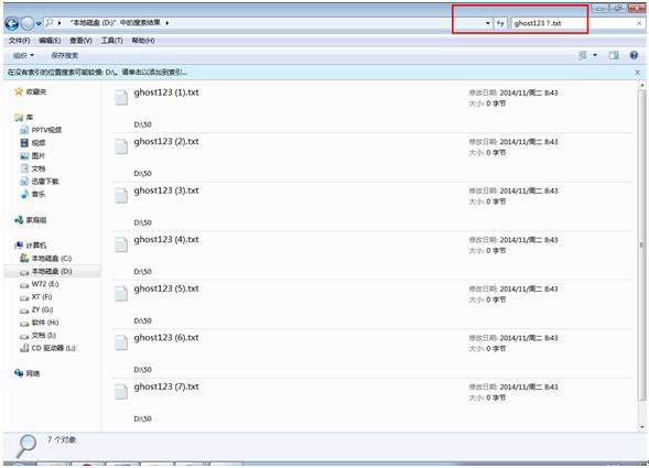 | Windows 7,中文名稱視窗7,是由微軟公司(Microsoft)開發的操作系統,內核版本號為Windows NT 6.1。Windows 7可供家庭及商業工作環境:筆記本電腦 、平板電腦 、多媒體中心等使用。Windows 7可供選擇的版本有:入門版(Starter)、家庭普通版(Home Basic)、家庭高級版(Home Premium)、專業版(Professional)、企業版(Enterprise)(非零售)、旗艦版(Ultimate)。 在Win7系統中執行搜索功能時,默認情況下是全盤掃描,但如果想選擇搜索位置進行有目的的搜索,還可借助通配符進行模糊搜索。通配符也就是用來代替個或多個未知字符的特殊字符,常用的通配符有* (星號)和?(問號)兩種,* 號代表任意字符串,?號代表任何單個字符,現xp系統之家官網教你利用Win7通配符進行模糊搜索的方法,具體如下:1、需要搜索所有擴展名為.txt的文件,只需在搜索欄中輸入*.txt即可。 2、當需搜索所有文件名為5個字符,且前4個字符都是“GHOST123”的txt文件只需在搜索欄中輸入“ghost123?.txt”即可。 ![]() 3、當搜索的文件需要使用多個篩選條件進行搜索,此時就可以利用自然語言搜索功能來一次完成篩選。想搜索計算機中的docx格式或者xlsx格式文件,只需在搜索欄中輸入“*.doc or*.xls”那么所有Doc格式和xLs格式的文件都會被搜索出來的。 以上對xp系統之家官網教你利用Win7通配符進行模糊搜索的方法介紹后,相信對大家有所幫助,更多精彩內容盡在系統之家官網。 windows 7 的設計主要圍繞五個重點——針對筆記本電腦的特有設計;基于應用服務的設計;用戶的個性化;視聽娛樂的優化;用戶易用性的新引擎。 跳躍列表,系統故障快速修復等,這些新功能令Windows 7成為最易用的Windows。 |