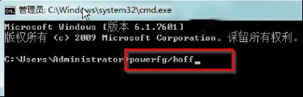 2、在打開的命令提示符窗口光標處輸入“powercfg/hoff”命令后按回車,即可成功關閉休眠功能了。