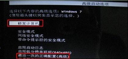2、重新啟動win7系統(tǒng)并按F8鍵進入系統(tǒng)高級選項的模式,選中最近一次正確配置恢復(fù)的系統(tǒng)。