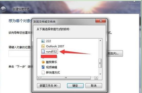 4、在桌面上新建一個快捷方式,在“瀏覽”上找到此文件。