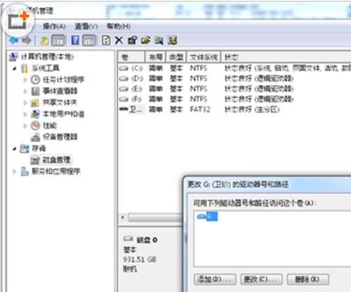 3、找到并右鍵u盤的盤符,選擇“更改驅(qū)動器名和路徑”,在彈出的窗口中點(diǎn)擊“更改”按鈕。
