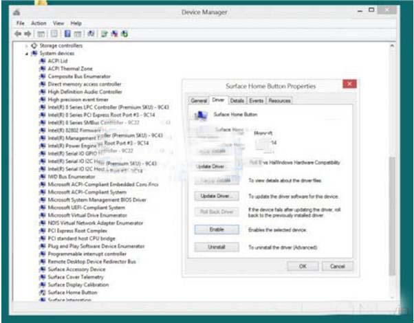 4、在“Surface Home性能”窗口中選擇“驅動”標簽。