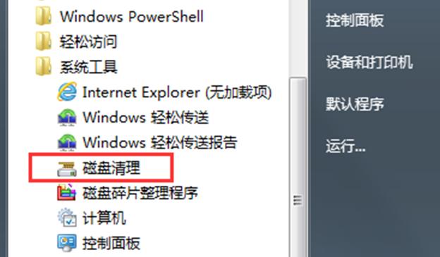1、點(diǎn)擊“開始——所有程序——附件——系統(tǒng)工具——磁盤清理”。