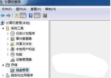 2、在打開的計(jì)算機(jī)管理界面中,打開“磁盤管理”項(xiàng)。然后在右側(cè)窗格中顯示的系統(tǒng)里面的各個(gè)盤符。