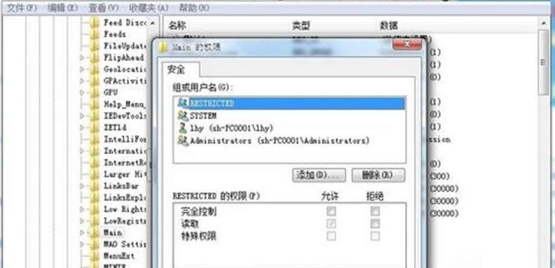 3、右鍵Main選擇權限——高級——添加 現在用戶—— 賦予權限“完全控制”。