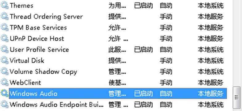| Windows 7,中文名稱視窗7,是由微軟公司(Microsoft)開發的操作系統,內核版本號為Windows NT 6.1。Windows 7可供家庭及商業工作環境:筆記本電腦 、平板電腦 、多媒體中心等使用。Windows 7可供選擇的版本有:入門版(Starter)、家庭普通版(Home Basic)、家庭高級版(Home Premium)、專業版(Professional)、企業版(Enterprise)(非零售)、旗艦版(Ultimate)。 最近有一朋友在使用Win7系統電腦后,在電腦關機前電腦聲音還是正常的,但再開機的時就沒有聲音了,而且任務欄右下角的喇叭上面也顯示著紅叉,把鼠標放在喇叭圖標上顯示“The Audio Service is not running”,怎么辦呢?針對這個問題,下面小編整理了大地Win7喇叭上顯示The Audio Service is not running的解決措施,現分享給大家,具體如下:1、按“Win+R”,打開“運行”窗口輸入“services.msc”命令,打開服務窗口。 2、在打開的服務窗口,找到并右鍵“Windows Audio”。 3、在打開的設置窗口中,將“啟動類型” 設為“自動”都可以。 以上方法設置后,Win7電腦無聲,喇叭圖標上顯示TheAudio Service is not running的問題就解決了。 windows 7 的設計主要圍繞五個重點——針對筆記本電腦的特有設計;基于應用服務的設計;用戶的個性化;視聽娛樂的優化;用戶易用性的新引擎。 跳躍列表,系統故障快速修復等,這些新功能令Windows 7成為最易用的Windows。 |
