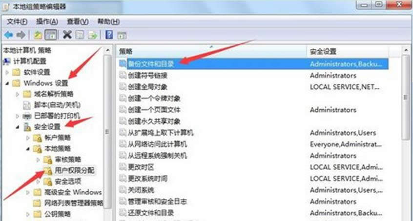 | Windows 7,中文名稱視窗7,是由微軟公司(Microsoft)開發的操作系統,內核版本號為Windows NT 6.1。Windows 7可供家庭及商業工作環境:筆記本電腦 、平板電腦 、多媒體中心等使用。Windows 7可供選擇的版本有:入門版(Starter)、家庭普通版(Home Basic)、家庭高級版(Home Premium)、專業版(Professional)、企業版(Enterprise)(非零售)、旗艦版(Ultimate)。 為了Windows操作系統的安全與穩定,定期更新補丁,但也有用戶在安裝過程中會遇到一些棘手問題,最近有用戶在安裝補丁時出現“安裝程序錯誤,您沒有許可來更新”錯誤提示,引起安裝失敗,怎么辦?其實這種現象主要是本地安全設置問題,下面小編給大家介紹雨林木風Win7安裝補丁時提示“安裝程序錯誤”的解決妙招。 1、按“Win+R”打開“運行”窗口,輸入“gpedit.msc”命令后按回車,打開組策略。 2、在打開的組策略中,點擊“windows設置——安全設置——本地策略——用戶權利分配”。 3、在右鍵窗口中,單擊“備份文件和目錄”,查看該選項下是否有下圖賬號,如沒有請加上,然后重啟計算機就解決了。 以上就是關于雨林木風Win7安裝補丁時提示“安裝程序錯誤”的解決妙招介紹了,沒有許可來更新windows錯誤的話,可按照教程的本地組策略編輯器相關修改,可輕松解決安裝程序出錯故障。 windows 7 的設計主要圍繞五個重點——針對筆記本電腦的特有設計;基于應用服務的設計;用戶的個性化;視聽娛樂的優化;用戶易用性的新引擎。 跳躍列表,系統故障快速修復等,這些新功能令Windows 7成為最易用的Windows。 |