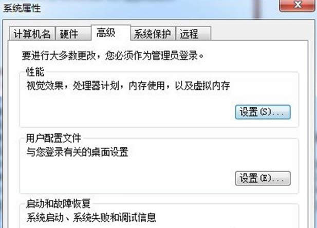 1、右擊“計(jì)算機(jī),選擇屬性,在打開(kāi)的屬性窗口中,切換到“高級(jí)”標(biāo)簽頁(yè),“性能”中點(diǎn)擊設(shè)置