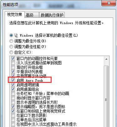 | Windows 7,中文名稱視窗7,是由微軟公司(Microsoft)開發的操作系統,內核版本號為Windows NT 6.1。Windows 7可供家庭及商業工作環境:筆記本電腦 、平板電腦 、多媒體中心等使用。Windows 7可供選擇的版本有:入門版(Starter)、家庭普通版(Home Basic)、家庭高級版(Home Premium)、專業版(Professional)、企業版(Enterprise)(非零售)、旗艦版(Ultimate)。 Win7筆記本系統使用過程中,用戶可通過任務欄和開始菜單屬性中的“使用Aero Peek預覽桌面”選項來關閉和開啟桌面預覽功能,而有部份用戶發現,這一選項選框變成了灰色的問題,Win7筆記本“使用Aero Peek預覽桌面”選項呈灰色咋回事?其實由于用戶關閉了 aero peek功能的原因,解決方法如下:1、右鍵點擊“計算機”選擇屬性,點擊“高級系統設置”。 2、點擊“性能”區域的“設置”按鈕。 3、在外觀性能設置列表中,找到并勾選“啟用aero peek”選項,最后點擊“應用——確定”。 ![]() 通過以上設置完成后,再打開任務欄和開始菜單屬性發現,“使用Aero Peek預覽桌面”已經可正常選擇了。 windows 7 的設計主要圍繞五個重點——針對筆記本電腦的特有設計;基于應用服務的設計;用戶的個性化;視聽娛樂的優化;用戶易用性的新引擎。 跳躍列表,系統故障快速修復等,這些新功能令Windows 7成為最易用的Windows。 |