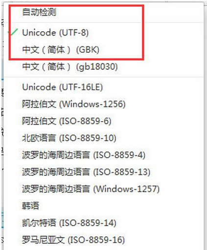 2、默認(rèn)情況下,一般使用“自動選擇”IE瀏覽器會自動讀取網(wǎng)頁中的編碼標(biāo)識再使用何種編碼來顯示,但也有些網(wǎng)頁沒有這些標(biāo)識,這就需要用戶自動設(shè)置了,用戶可嘗試在幾個(gè)選項(xiàng)中更換基本可以解決亂碼的問題。