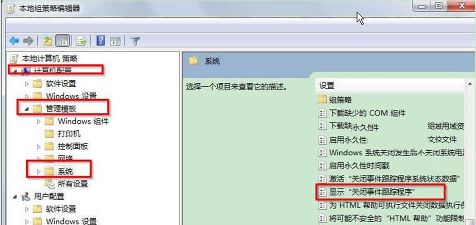 | Windows 7,中文名稱視窗7,是由微軟公司(Microsoft)開發(fā)的操作系統(tǒng),內(nèi)核版本號(hào)為Windows NT 6.1。Windows 7可供家庭及商業(yè)工作環(huán)境:筆記本電腦 、平板電腦 、多媒體中心等使用。Windows 7可供選擇的版本有:入門版(Starter)、家庭普通版(Home Basic)、家庭高級(jí)版(Home Premium)、專業(yè)版(Professional)、企業(yè)版(Enterprise)(非零售)、旗艦版(Ultimate)。 在使用Win7系統(tǒng)電腦過程中,如果遇到不正常關(guān)機(jī)現(xiàn)象,也許很多用戶搞不清是什么原因?qū)е碌陌桑鋵?shí)事件跟蹤功能查找異常關(guān)機(jī)的原因,打開事件跟蹤功能的方法也非常簡(jiǎn)單,下面小編給大家分享在技術(shù)員聯(lián)盟Win7系統(tǒng)打開事件跟蹤功能的步驟,具體如下:1、按“Win+ R”,打開“運(yùn)行”窗口,輸入“gpedit.msc”命令后,按回車鍵。 2、在打開的本地組策略編輯器窗口中,依次展開:“計(jì)算機(jī)配置——管理模板——系統(tǒng)”。 3、點(diǎn)擊“系統(tǒng)”后,在右側(cè)窗口中找到并打開顯示“關(guān)閉事件跟蹤程序”。 4、在“顯示‘關(guān)閉事件跟蹤程序’”界面中,點(diǎn)擊“已啟用”,最后按“確定”。 windows 7 的設(shè)計(jì)主要圍繞五個(gè)重點(diǎn)——針對(duì)筆記本電腦的特有設(shè)計(jì);基于應(yīng)用服務(wù)的設(shè)計(jì);用戶的個(gè)性化;視聽娛樂的優(yōu)化;用戶易用性的新引擎。 跳躍列表,系統(tǒng)故障快速修復(fù)等,這些新功能令Windows 7成為最易用的Windows。 |