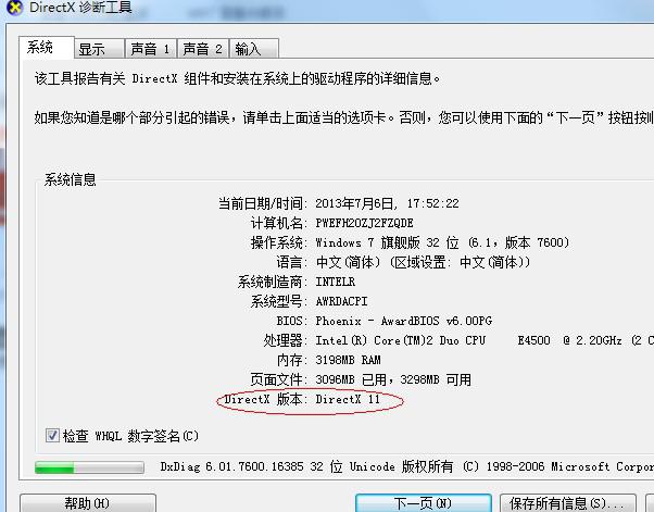 Direct eXtension簡稱DX,是微軟創建的多媒體編程接口DirectX,廣泛應用于Windows電子游戲開發。DX版本的高低與顯卡運行效率有關,如果發現自己的WIN7系統電腦DX版本過低時,可到微軟網站下載更新DX版本。那么在WIN7系統中如何查看自己的電腦安裝的DX版本是否過低呢?現Win7系統之家小編以Windows7系統自帶了DirectX診斷工具查看方法,教大家在Win7系統中快速查看電腦DX版本是否過低的方法,具體操作方法如下: