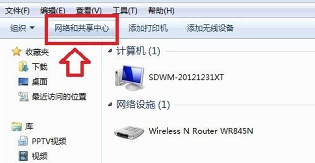1、雙擊打開桌面上的“網(wǎng)絡”圖標,進入網(wǎng)絡,點擊頂部的“網(wǎng)絡共享中心”。