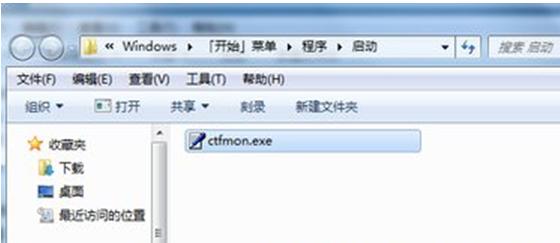 4、這樣在桌面可以看到多了一個(gè)名為Ctfmon.exe的快捷方式,剪切這個(gè)快捷方式,然后打開開始菜單程序里面的啟動(dòng)文件夾,將其粘貼進(jìn)去就OK了。