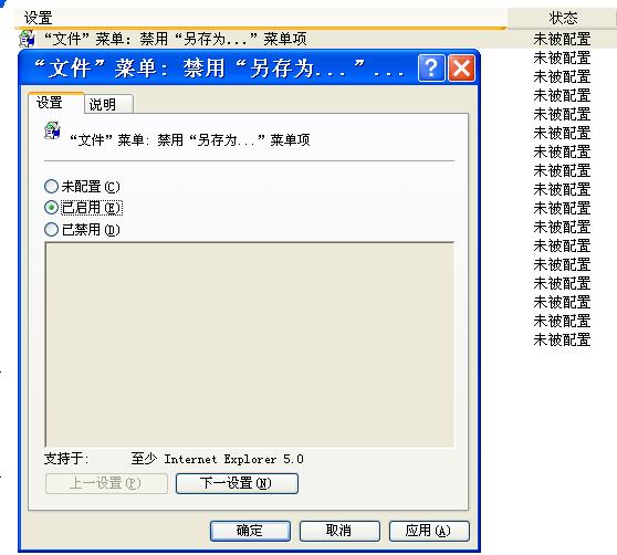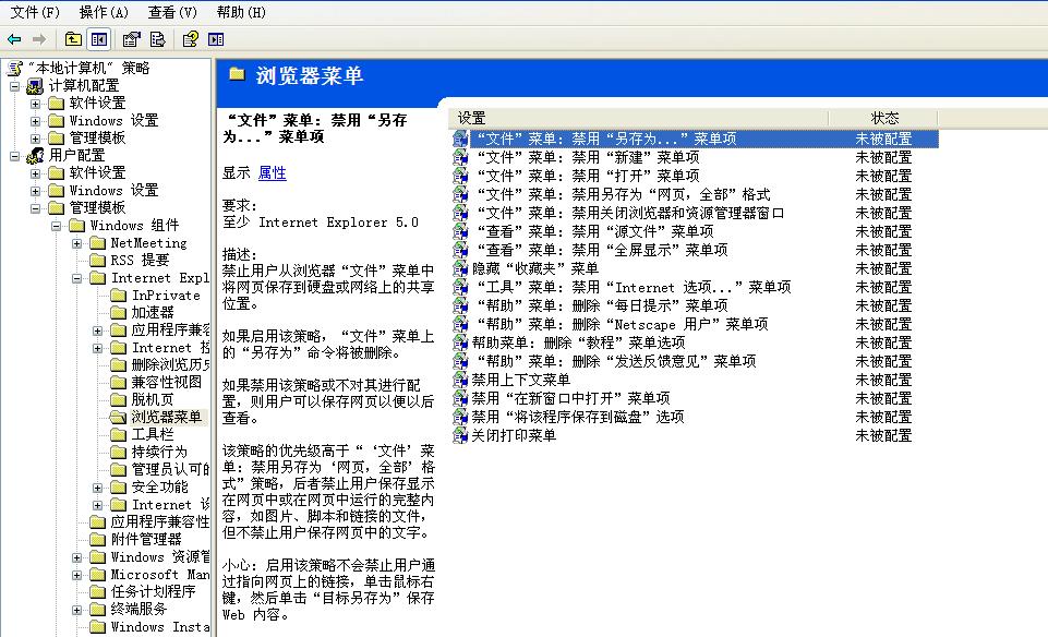 | Windows 7,中文名稱視窗7,是由微軟公司(Microsoft)開發的操作系統,內核版本號為Windows NT 6.1。Windows 7可供家庭及商業工作環境:筆記本電腦 、平板電腦 、多媒體中心等使用。Windows 7可供選擇的版本有:入門版(Starter)、家庭普通版(Home Basic)、家庭高級版(Home Premium)、專業版(Professional)、企業版(Enterprise)(非零售)、旗艦版(Ultimate)。 電腦處于集體環境時,一臺計算機多人使用是常有的事,默認情況下,IE瀏覽器具有自動保存功能,但是多人使用后,就會給硬盤的整潔造成影響。Win7系統之家為了幫助用戶保持硬盤的整潔,現給大家分享限制IE瀏覽器保存功能的方法,具體操作如下:1、按“WIN+R”打開“運行”窗口,輸入“gpedit.msc”命令后按“確定”,打開“組策略編輯器”。 2、在“組策略編輯器”中選擇“用戶設置”→“管理模板”→“Windows組件”→Internet Explorer→“瀏覽器菜單”分支。 3、在右側窗格中右擊“‘文件’菜單:禁用‘另存為…’菜單項”選擇屬性,點擊“已啟用”。 4、與第3步驟同樣的方法將以下策略項目啟用即可:“文件”菜單:禁用另存為網頁菜單項”;“查看”菜單:禁用“源文件”菜單項和“禁用上下文菜單”等策略項目。 另外,如果想禁止他人對IE瀏覽器進行隨意地更改,只需在此處啟用“‘工具’菜單:禁用‘Internet選項…’”的策略即可。 windows 7 的設計主要圍繞五個重點——針對筆記本電腦的特有設計;基于應用服務的設計;用戶的個性化;視聽娛樂的優化;用戶易用性的新引擎。 跳躍列表,系統故障快速修復等,這些新功能令Windows 7成為最易用的Windows。 |