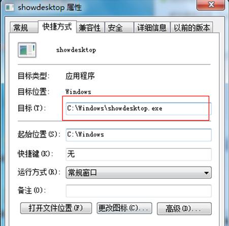 | Windows 7,中文名稱視窗7,是由微軟公司(Microsoft)開發(fā)的操作系統(tǒng),內核版本號為Windows NT 6.1。Windows 7可供家庭及商業(yè)工作環(huán)境:筆記本電腦 、平板電腦 、多媒體中心等使用。Windows 7可供選擇的版本有:入門版(Starter)、家庭普通版(Home Basic)、家庭高級版(Home Premium)、專業(yè)版(Professional)、企業(yè)版(Enterprise)(非零售)、旗艦版(Ultimate)。 默認情況下,Win7系統(tǒng)是沒有顯示桌面圖標的,但是很多用戶需要用到這個功能,因為此功能能方便用戶快速顯示桌面,為了幫助用戶提高操作效率,下面Win7系統(tǒng)之家小編給大家介紹Win7旗艦版系統(tǒng)在任務欄處添加一個顯示桌面圖標的方法,大家一起來看看是添加步驟吧!具體如下:1、打開開始菜單,然后選擇運行選項,在運行中輸入“Noetpad”命令后按回畫,打開記事本。 2、在打開的記事本中輸入如下命令: [Shell] Command=2 IconFile=explorer.exe,3 [Taskbar] Command=ToggleDesktop 輸入之后將文件另存為c:\windows目錄下,然后取名為showdesktop.exe,點擊“保存”,如圖所示: 3、到C:\windows目錄中找到剛才保存的showdesktop.exe文件,將該文件拖動到任務欄中,如圖所示: ![]() 4、再次到C:\windows目錄下,找到剛保存的文件,將showdesktop.exe文件的后綴改為scf,也就是Showdesktop.scf,改完之后,將拖到任務欄中showdesktop.exe右擊選擇屬性,在打開的屬性窗口中,更改目標這一欄的文件名,默認如圖所示: 5、我們將其修改為Scf的文件,修改完就可以使用顯示桌面的功能了,如圖所示: 6、修改完成之后單擊確定按鈕即可,這時候你再試一下,看顯示桌面圖標的功能是不是出來了,如圖所示: ![]() 如果修改完成之后,功能雖然生效,但還是顯示原始圖標的情況下,請注銷一下電腦,顯示桌面的圖標就會變成正常的了。 PS:也行有人會問,直接把文件保存為Scf后綴拖進去不是更簡單嗎?深度系統(tǒng)官網告訴你,這是因為Win7任務欄不支持拖入Scf的文件,所以只能拖進去后再修改才能使用。 windows 7 的設計主要圍繞五個重點——針對筆記本電腦的特有設計;基于應用服務的設計;用戶的個性化;視聽娛樂的優(yōu)化;用戶易用性的新引擎。 跳躍列表,系統(tǒng)故障快速修復等,這些新功能令Windows 7成為最易用的Windows。 |