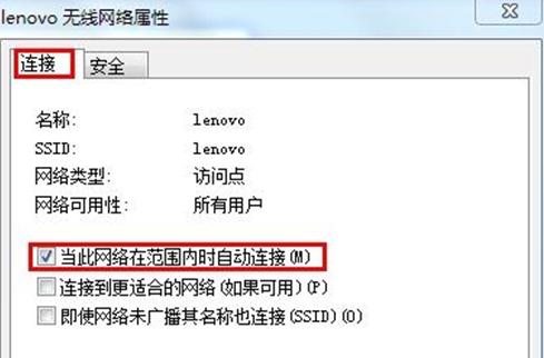 2、彈出無線網(wǎng)絡(luò)屬性窗口,在“連接”選項卡下,將“當(dāng)此網(wǎng)絡(luò)在范圍內(nèi)時自動連接”前面的勾選上,然后點擊“確定”按鈕即可,如果要關(guān)閉的話把那個勾去掉即可。