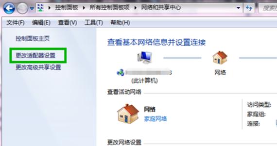 2.在網(wǎng)絡(luò)和共享中心界面,點(diǎn)擊左上角的“更改適配器設(shè)置”