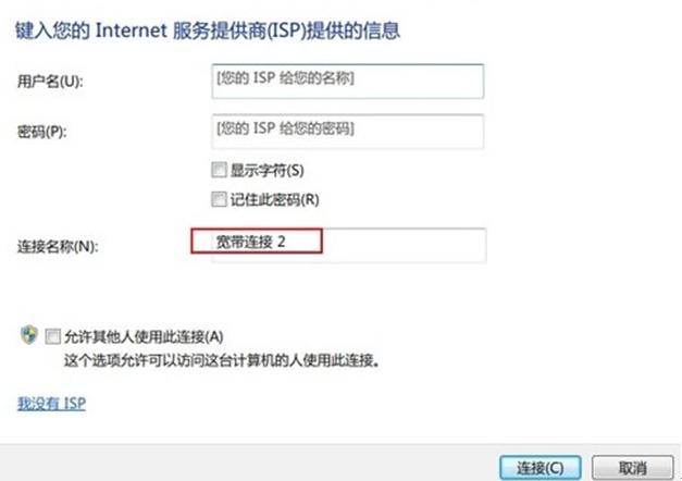 2、命名為“寬帶連接2”,然后在屬性里找到選項(xiàng),不選擇連接時(shí)顯示進(jìn)度和提示名稱,密碼和證書(shū)等確定。