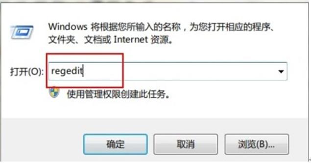 3、打開(kāi)運(yùn)行窗口,輸入“regedit”后按確定,打開(kāi)注冊(cè)表。