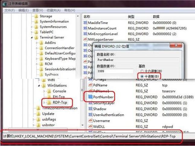 | Windows 7,中文名稱視窗7,是由微軟公司(Microsoft)開發的操作系統,內核版本號為Windows NT 6.1。Windows 7可供家庭及商業工作環境:筆記本電腦 、平板電腦 、多媒體中心等使用。Windows 7可供選擇的版本有:入門版(Starter)、家庭普通版(Home Basic)、家庭高級版(Home Premium)、專業版(Professional)、企業版(Enterprise)(非零售)、旗艦版(Ultimate)。 遠程桌面默認端口為3389,為了加強系統的安全,Win7系統之家建議將這個端口修改掉,現小編給大家介紹系統之家Win7旗艦版系統中遠程桌面3389端口的修改方法,具體步驟如下:1. 按“Win+R”組合鍵打開運行窗口,輸入Regedit 并按回車,打開注冊表編輯器。 2. 在“注冊表編輯器”依次定位到 “HKEY_LOCAL_MACHINE\System\CurrentControlSet\Control\TerminalServer\WinStations\RDP Tcp\PortNumber”。 單擊該PortNumber編輯菜單,然后修改為十進制。 3. 鍵入新的端口號,然后單擊"確定"。退出注冊表編輯器。 重新啟動計算機后即可生效。 windows 7 的設計主要圍繞五個重點——針對筆記本電腦的特有設計;基于應用服務的設計;用戶的個性化;視聽娛樂的優化;用戶易用性的新引擎。 跳躍列表,系統故障快速修復等,這些新功能令Windows 7成為最易用的Windows。 |