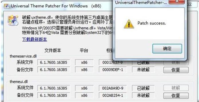| Windows 7,中文名稱視窗7,是由微軟公司(Microsoft)開發的操作系統,內核版本號為Windows NT 6.1。Windows 7可供家庭及商業工作環境:筆記本電腦 、平板電腦 、多媒體中心等使用。Windows 7可供選擇的版本有:入門版(Starter)、家庭普通版(Home Basic)、家庭高級版(Home Premium)、專業版(Professional)、企業版(Enterprise)(非零售)、旗艦版(Ultimate)。 ?Win7系統使用過程中,有些用戶為了追求美觀,經常會更換一些不同的主題,甚至有些用戶還想去改一下WIN7里面的主題,破解Windows7主題,Win7系統之家給推薦大家使用Universal Theme Patcher (Windows主題破解通用補丁),這樣使用起來比較簡單,現給大家詳解電腦公司Win7純凈版系統中破解win7主題的步驟。具體如下:1.下載軟件解Universal Theme Patcher 壓縮后如圖,根據你的操作系統類型,選擇x86(32位)或x64(64位)版軟件,雙擊運行 2.軟件會提醒你,你的操作系統版本,你需要破解多少個文件。 3.軟件主界面,自動檢測哪個文件沒有被破解。分別點擊最右面的“破解”,會提示你破解成功。 4.全部破解完成后,會提示你重啟生效。重啟后,你就可以自由自在享受各種漂亮的破解主題了。 windows 7 的設計主要圍繞五個重點——針對筆記本電腦的特有設計;基于應用服務的設計;用戶的個性化;視聽娛樂的優化;用戶易用性的新引擎。 跳躍列表,系統故障快速修復等,這些新功能令Windows 7成為最易用的Windows。 |
